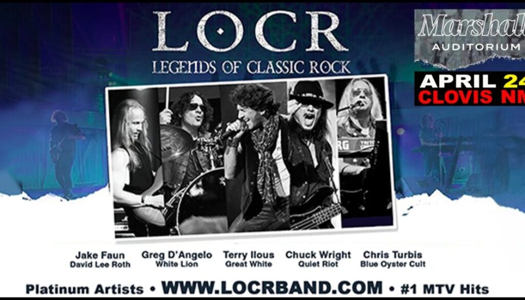 Coming Up ! Legends of Classic Rock comes to Marshall Auditorium in Clovis, New Mexico on Friday, April 24th. Doors 6:30. Tickets $25 / Senior and Military $20 / Group of 5 Special Discount only $45. Get your tickets now. #ClovisNM #FortSumner w/ Clovis Community College